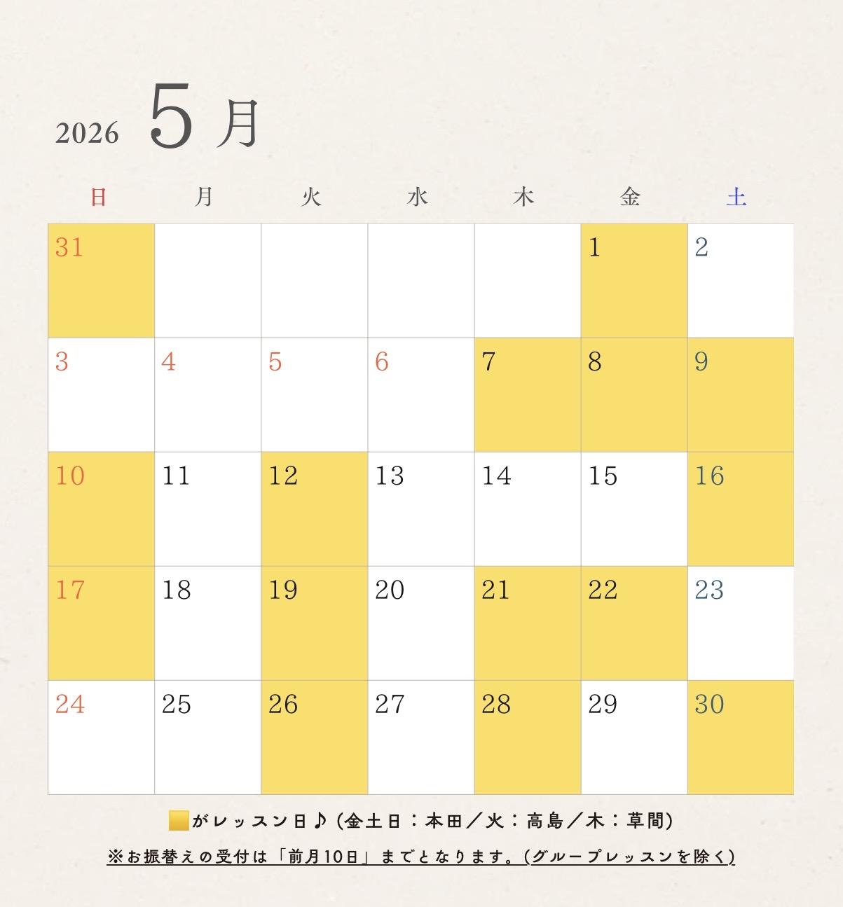 (ごきょうだいお一人追加ごとに5000円/月にて、ファミリーレッスンも可能♪)